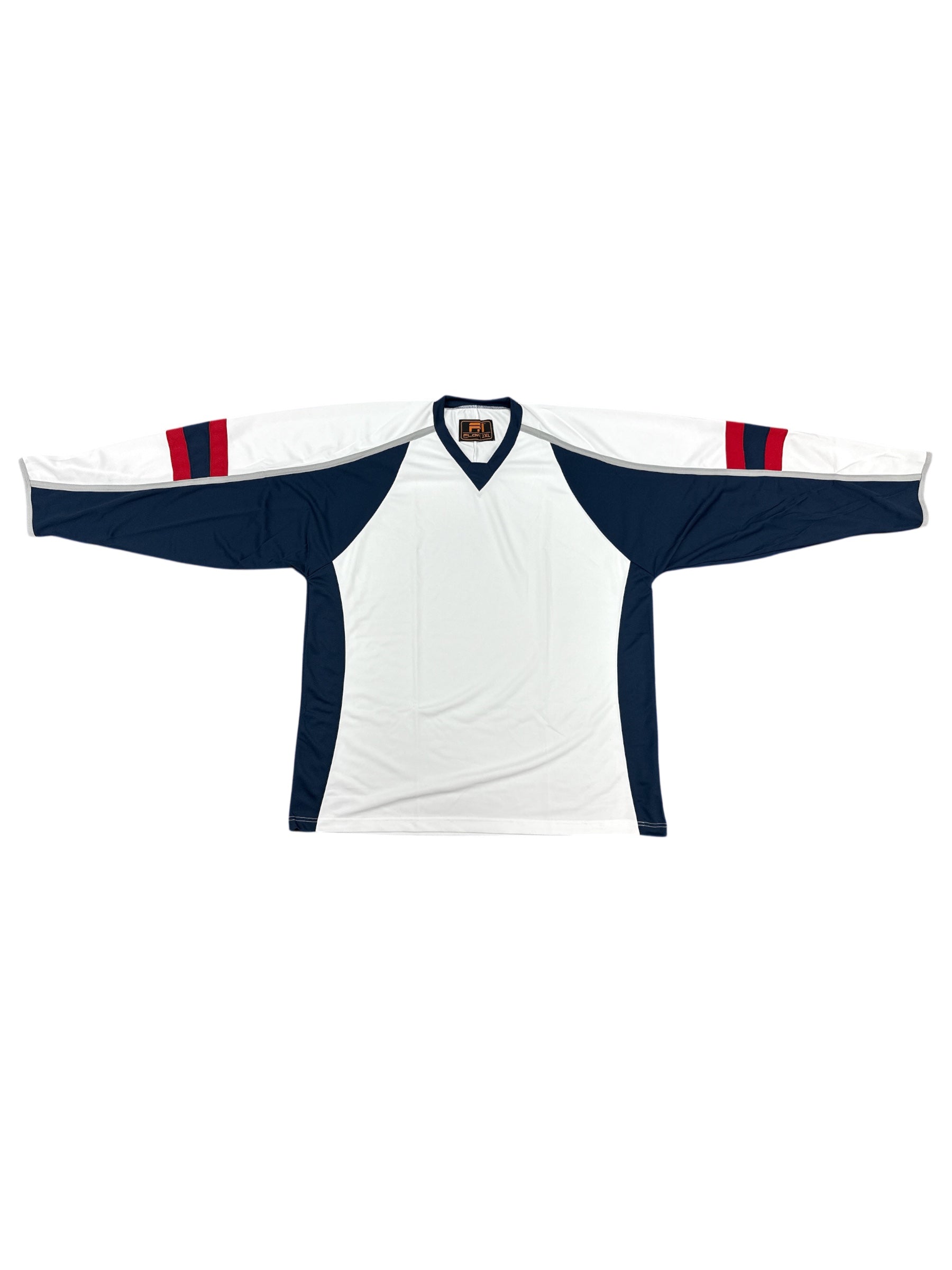 The Flow Hockey 3-Color Stock Jersey brings a bold, athletic look to training sessions and club play. Made from breathable, lightweight mesh, this jersey features a striking three-panel color layout that enhances team visibility while maintaining the comfort and durability needed for daily use. The athletic cut ensures full mobility on the ice, and reinforced seams hold up to intense practices, scrimmages, and league play.